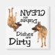 This magnet features a German Shepherd standing on all 4 legs. Text reads: "Dishes are Dirty". Turn this magnet up-side-down and the same German Shepherd is featured with this text: "Dishes are Clean". Great for that animal lover in your life! Looking to adopt a new best friend? Please visit petfinder.com to save the life of a shelter/rescue animal near you.