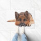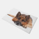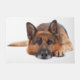 German shepherd lying down on a white background doormat