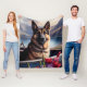 German Shepherd on a Paddle: A Scenic Adventure Fleece Blanket