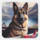 German Shepherd on a Paddle: A Scenic Adventure Square Sticker