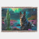 A quality printed throw has its advantages. This is a much finer weave throw than its loopier cousins, and though lighter, it is worth the investment for custom room accessorizing. The back is much prettier than the typical brown, and the fringe on the long sides very vivid, the selvage nicely done. Before photographing, I washed the throw in cold water, delicate, with a thicker woven throw the same size. On tumble dry low, this throw was dry in half the time as the other. This is a very practical quality if you use throws for furniture covers or to wrap up in frequently. The sleekness of the fabric makes it a great layer for accenting or protecting without the feeling of sitting on too much stuff. Perfect for napping or when you feel a light chill coming on. The color printing is beautiful and on this fabric, matched the design and color of my Photoshop image. This is an advantage for blending room fabrics and colors. The fringe on the short sides prints the colors from the design image and therefore varies from the side fringe. I streaked a white fractal line through the plaid pattern to give the illusion of weaving. This printed as crisp as an illusory thread, and put some white in the short side fringe, showing another advantage of print vs loomed- for artistic purposes, line lines, detail, and color integrity can be planned and preserved. My loomed throws have color limitations and more of a needlepoint texture. Print throws reproduce an exact image. The throw felt a little stiff straight out of the package, but this went away in the first delicate wash. Of course I searched the wash water for ink or bleeding and there was none.