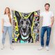 German Shepherd Pop Art with GSD, Yellow Red Blue Fleece Blanket