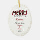 The image on the front of this cute Holiday ornament is of an adorable German Shepherd puppy wearing a red and white Santa Claus hat. Behind him is a sprig of holly and red berries. Tiny gold confetti on a white background gives a bit of glitter to the ornament. On the back, stylised red and black buffalo plaid text says MERRY CHRISTMAS", plus your custom text in red and black. Be sure to see the matching products, including gift bags and boxes, in our store.
