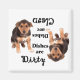 This dishwasher magnet features an adorable German Shepherd puppy with text that reads: "Dishes are Dirty". Turn this magnet up-side-down and the same picture is featured with this text: "Dishes are Clean". Great for that animal lover in your life!