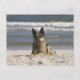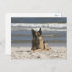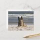 German Shepherds rule! This cute canine greeting postcard features an image of a beautiful brown and black German Shepherd dog lying on the beach with ocean waves in the background. This sweet pup is ready to help you send smiles to family, friends, and customers.