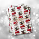 The repeated pattern on these Christmas wrapping paper sheets is an image of a cute German Shepherd Dog puppy peeking out from a red and white Holiday gift bag. Behind him is a sprig of holly and red berries. Stylised red and black buffalo plaid text says MERRY CHRISTMAS". The background on two of the sheets in this set is white, while the third sheet is silver.
