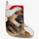 A Cute German Shepherd wearing a Santa Claus Hat for Christmas