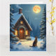 German Shepherd Snowy Forest Cabin Christmas Paint Card