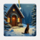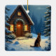 German Shepherd Snowy Forest Cabin Christmas Paint Ceramic Ornament