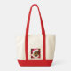 Love the durable cream colored canvas and navy blue contrasted handles. Perfect for carrying my laptop and papers.