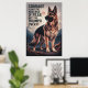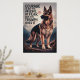 A German Shepherd stands proudly on a mountaintop, with a motivational quote about courage, Courage is not the absence of fear, but the triumph over it, displayed above. The dogs confident pose and the scenic background evoke a sense of strength and determination.
