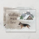 Surprise the dog lovers in your life with this wonderful, cosy scene! A gorgeous, German Shepherd runs in the snow with a quaint, little cabin in the background. Add some snow topped mountains and a couple of evergreens and you have yourself a watercolor winter wonderland! The German Shepherd adds the icing on the cake, after all, what is a wonderland without a German Shepherd?