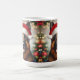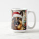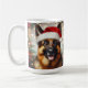 A cheerful German Shepherd dog wearing a Santa hat against a bokeh-lit Christmas background, promoting joyful seasonal vibes.