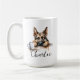 A morning coffee mug with a german shepherd with custom name in script style. "May your Coffe be stronger than your dog's Attitude" is written on the back. Perfect gift for dog owners that have a dog with an attitude and also love coffee.