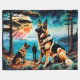 German Shepherd resting after hike to top of mountain overlooking the ocean