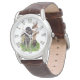 The watch looks really great! Very sharp and well done. The leather band is really nice, though for a man's watch I think it should be longer. Unfortunately, it isn't big enough for my husband's wrist but I will get a replacement because he is very excited to wear it!