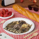 This artwork shows a proud pointer dog in classic hunting stance surrounded by forest wildlife including deer, fox, wild boar and pheasants.