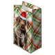 Dog lovers will adore receiving or giving this cute and funny holiday gift bag featuring an adorable German Wirehaired Pointer dog in a Santa hat, on a red and green seasonal plaid patterned background.