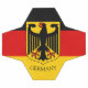 The coat of arms of Germany displays a black eagle (the Bundesadler "Federal Eagle", formerly Reichsadler "Imperial Eagle") on a yellow shield (Or, an eagle displayed sable). It is a re-introduction of the coat of arms of the Weimar Republic (in use 1919–1935) adopted by the Federal Republic of Germany in 1950. The current official design is due to Tobias Schwab (1887–1967) and was introduced in 1928.