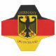 The coat of arms of Germany displays a black eagle (the Bundesadler "Federal Eagle", formerly Reichsadler "Imperial Eagle") on a yellow shield (Or, an eagle displayed sable). It is a re-introduction of the coat of arms of the Weimar Republic (in use 1919–1935) adopted by the Federal Republic of Germany in 1950. The current official design is due to Tobias Schwab (1887–1967) and was introduced in 1928.