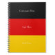 Customise this notebook with your title, name, date, or any other text on the three colours of the flag of Germany. Use it as a class notebook, travel diary, or for German themed clubs and organisations.