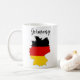Show everyone your love for the country of Germany with this unique coffee mug featuring a map of Germany filled in with the colours of the German flag.  The font and colour of the text and the background colour of the product can be changed to fit your preference.