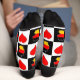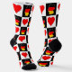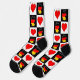Fun patriotic socks for proud Germans and anybody who loves the great nation of Germany. Featuring a unique black and white chequered pattern with red hearts on the white squares, and the black squares filled in with a map of Germany filled in with the German national flag. These are a great way to show your love and pride in Germany.