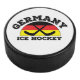 Germany Ice Hockey Hockey Puck designed by Nisha Prabhu. Ice Hockey is a popular spectator sport in Germany. Show your support for Germany with a Germany sports theme hockey puck that makes excellent sports gifts.