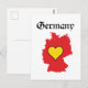 Share your love of Germany with this Germany map postcard! The postcard is designed with the colours of the German flag and features a heart inside of the map.