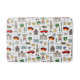This rug is just as pictured! Vibrant Red and very soft material, nice to step in out of the tub! Matches my set of accessories and shower curtain! A must have to add some whimsy to your bathroom! Very nice, vibrant and clear print! Beautiful!