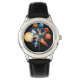The leather band makes it seem like an “older kids” watch.   Easy to read the time. Clear printing and image.