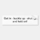 Bumper sticker with the statement "Get in - buckle up - shut up - and hold on!"