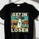 Here's another trending vintage-style t-shirt design featuring a retro mountain landscape with a sunburst background and the phrase "get in loser." Let me know if you’d like any changes! 🌄✨