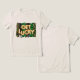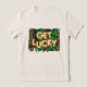 Get Lucky gold foil balloon with green glitter and camouflaged stripes St. Patrick's Day t-shirt