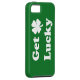 I received this case as a joke from my wife who loves all things Irish. It is a reminder for me to take care of our dog - Lucky. The case is lined with a very durable plastic foam protection that pads the phone in the back and around the edges. The back of the case is laminated which I found to be a good thing on the other family members' cases; however, mine does show some scratches from my keys and other things that have come in contact with the lamination. It is the only phone case that I would recommend to Zazzle not to laminate. The printing is perfect. The white letters and shamrock are a clear contrast to the green background. It is very easy to read and a great reminder to care for the dog - Lucky.