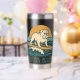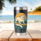 This retro-inspired surf art features a too-cool bulldog who rides an endless wave in front of the setting golden sun. "Get On Board" is written in teal vintage coastal font. Designed with old-school California energy, the distressed look gives it an authentic feel, like it was pulled straight from a vintage surf shop. This insulated tumbler is perfect for beach days, surf sessions and as an everyday statement accessory. Stay salty, and hydrated.