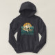 This retro-inspired surf art features a too-cool bulldog who rides an endless wave in front of the setting golden sun. "Get On Board" is written in teal vintage coastal font. Designed with old-school California energy, the distressed look gives it an authentic feel, like it was pulled straight from a vintage surf shop. Show off your love for the waves and dogs with this fun hoodie sweatshirt. | Pro-Tip: For vibrant colors, we recommend vivid printing for most apparel. For white apparel select classic printing.