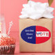 VOTE Text filled with Flag colours with a blue and red border. Distinctive.