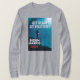 Get Ready, Get Registered in bright modern white typeface above a person on a perilous cliff. Biden and Harris written on the stable ground underneath, also in bright white font. 2024 is written in bold red underneath. At the bottom of the cliff is the pitiful word Trump crashed onto the rocks! This long-sleeved t-shirt is ideal for cooler months.