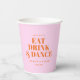 GET READY TO EAT DRINK AND DANCE! Modern pink, orange, bold font, wedding custom paper cups with your names and date.
