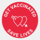 Get Vaccinated save lives red white hearts Classic Round Sticker