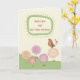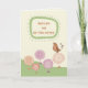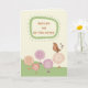 This sweet bird surrounded by whimsical flowers is looking at the get well message for someone who had ear tube suergery. The orage, pink, green and brown soft colours make this card suitable for a child, woman or man.