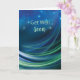 This contemporary card blends soothing shades of navy blue, green, and light blue, featuring abstract circular accents towards the bottom. With a modern script, "Get Well Soon" graces the top, offering a message of comfort and support. Perfect for professional settings, this card extends heartfelt wishes for a swift recovery to colleagues or clients in need of a boost. Let your gesture speak volumes with this elegant expression of care and well-being.