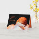 A flamingo with it's beck in it's feathers looking to the side, like sad, or wondering about something or someone. You can customise this card for any occasion.