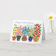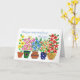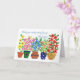 A Hip Surgery Speedy Recovery card with a row of pots of brightly coloured flowers, from a handpainted paper collage by Judy Adamson. Please contact me through my store if you would like the front cover text changed and the inside is left blank for your own message.
