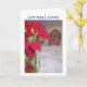 Photography, of a guy in a hospital bed and a vase flowers, on the front, an inside Get Well greeting, and Get Well Soon balloons on the back, comprise this card suitable for a man.