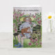 Original drawing of an energetic and whimsical older lady with a get well message.......A cheerful woman sitting on a garden bench surrounded by rose bushes and holding her cat on her lap. She is sending a get well message. The inside has a sweet message that would put a smile on your face.