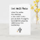 A funny Get Well Soon card, featuring a bad poem and illustration, about how a stiff shot can do wonders. Our character, tillie, is wearing a fedora, smoking a cigaret and holding a bottle of bourbon.