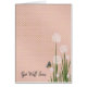 white puff flowers with butterfly on shimmering pink blush and gold polka dot background for get well soon