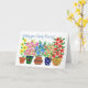 A general Speedy Recovery card with a row of pots of brightly coloured flowers, from a handpainted paper collage by Judy Adamson. Please contact me through my store if you would like the front cover text changed and the inside is left blank for your own message.